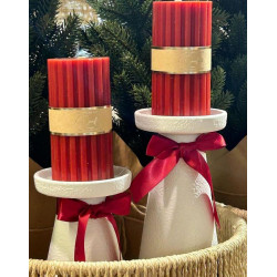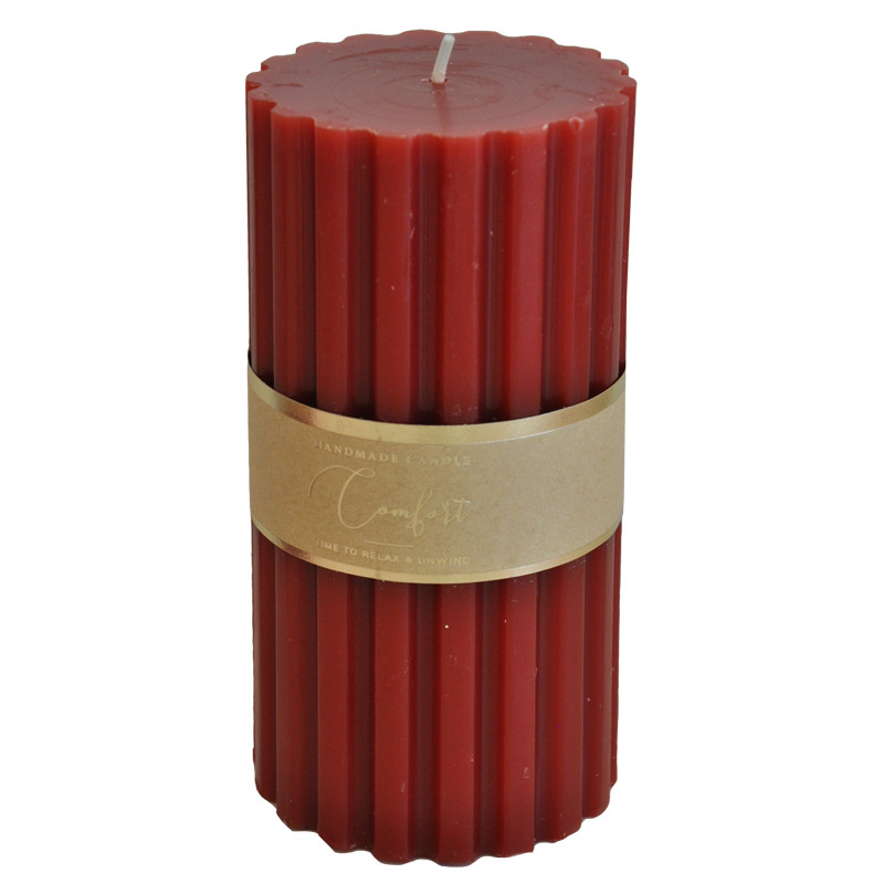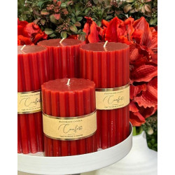 Syvän punainen pöytäkynttilä.