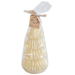 Kultainen kuusikynttilä sellofaanipaketissa.