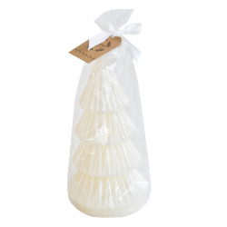 Valkoinen kuusikynttilä sellofaanipaketissa.