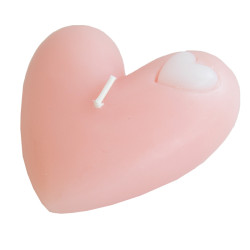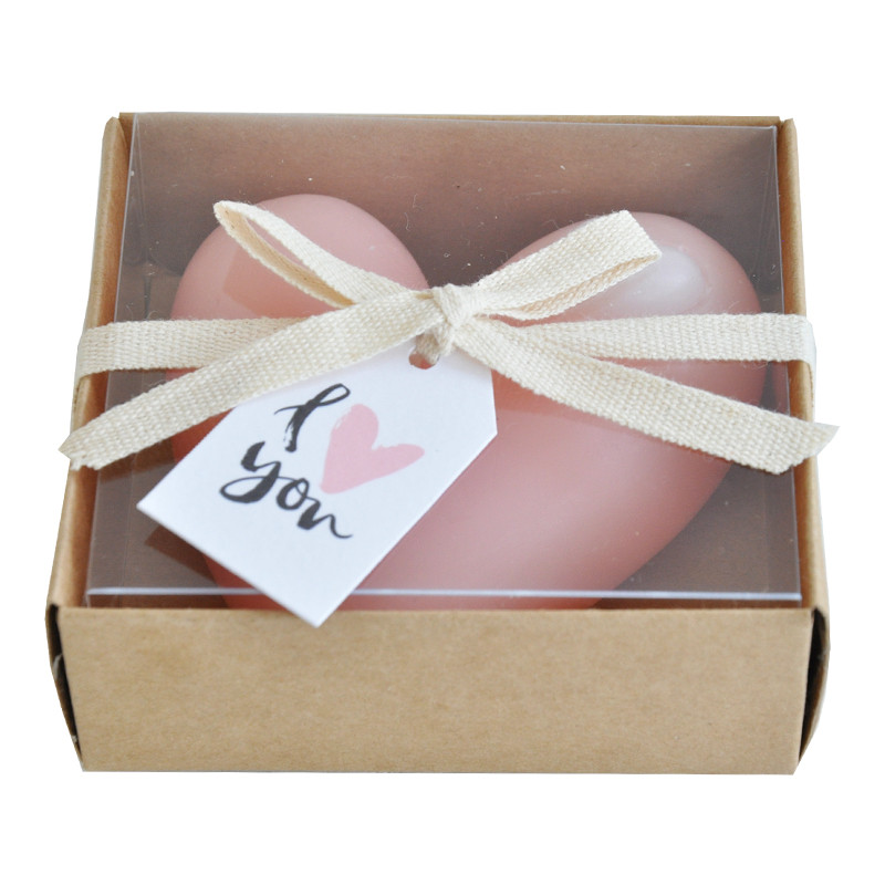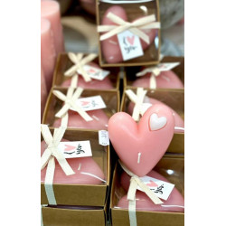 Matala vaaleanpunainen sydänkynttilä rasiassa.