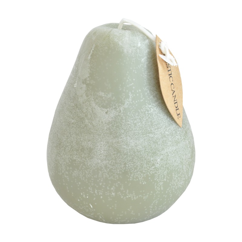 Huurrepintainen päärynänmuotoinen kynttilä.