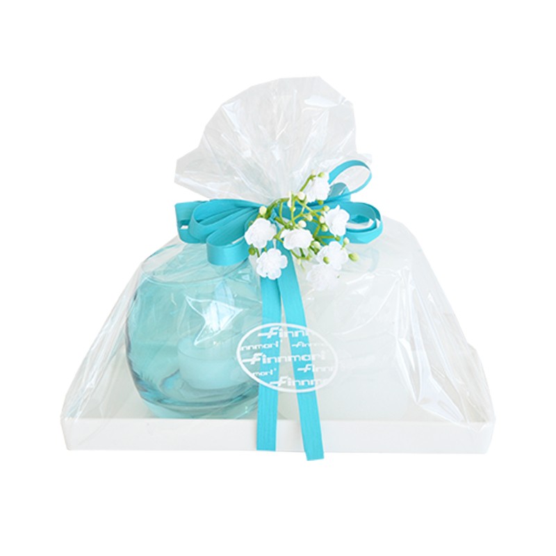 Lahjapakkaus alusta, 7x8 cm pöytäkynttilä, lasilyhty + muovilämpökynttilä