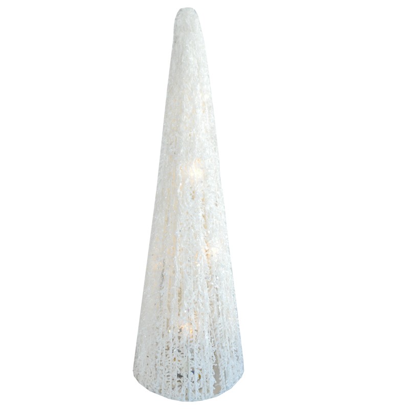 Valkoinen kartio, jossa led-valot sisällä.Pakkaus ei sisällä paristoja (3xAAA)