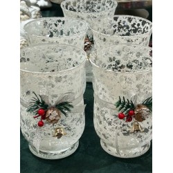 Huurrepintainen lasilyhty, jossa havukoriste.