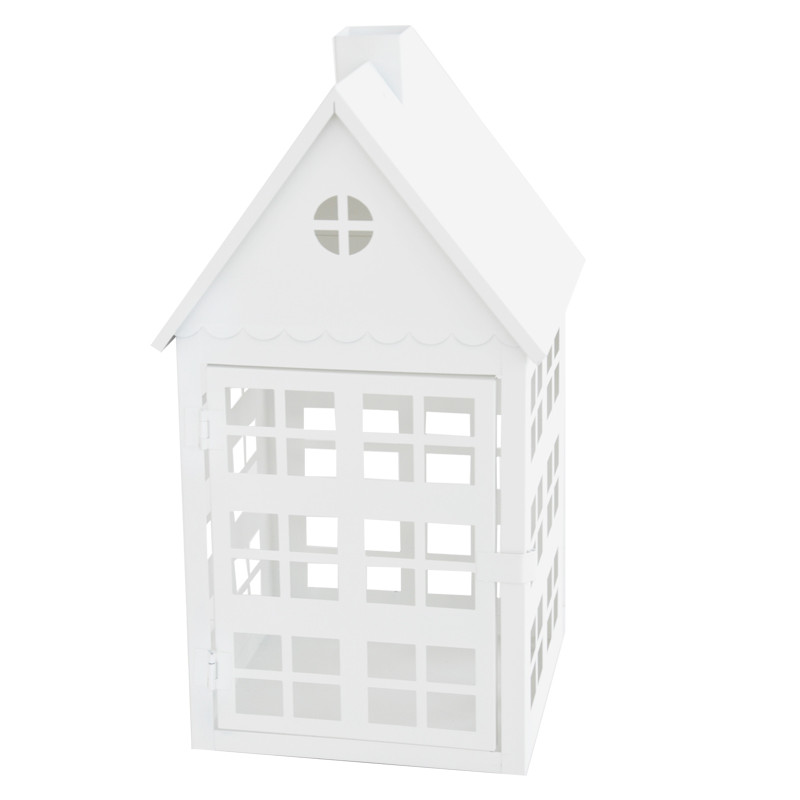 Metallinen talolyhty, jossa edestä aukeava luukku.