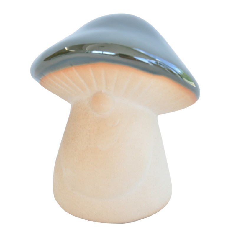 Keraaminen sieni/tonttu koriste, jossa vihreä hattu.