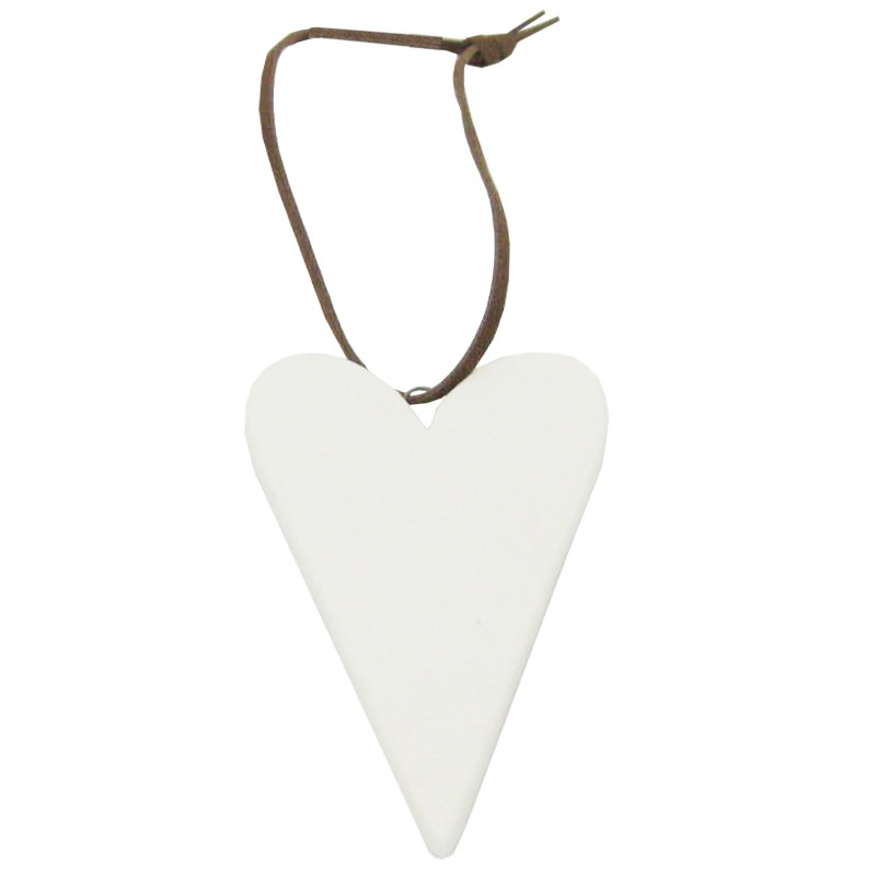 Sydänkoriste ripustettava keraaminen valkoinen.