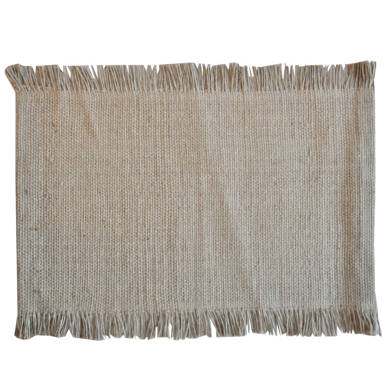 Juutti tabletti ohutta kangasta. Reunoissa hapsut.