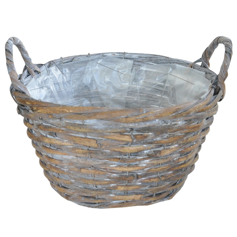 Pyöreä hieman alaspäin kapeneva rottinkikori/ruukku.Sisäpuolella muovisuoja.