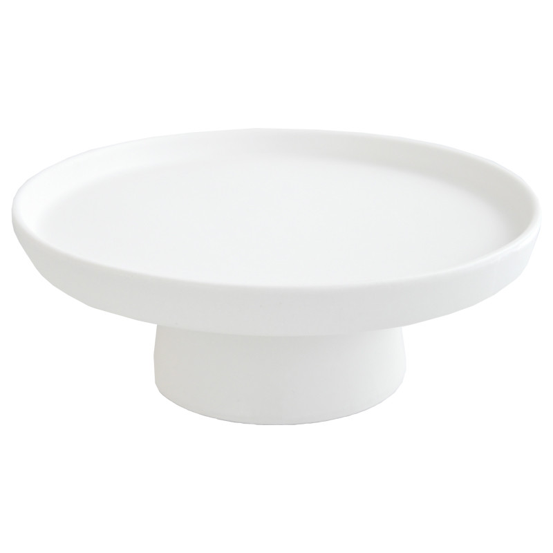 Pyöreä jalallinen alusta, jossa matala reuna.