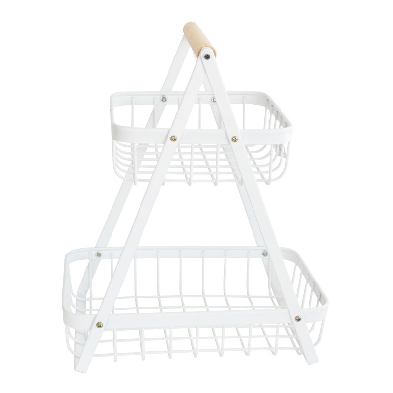 Kerrosteline, jossa kaksi erikokoista koria.Puinen kahva.