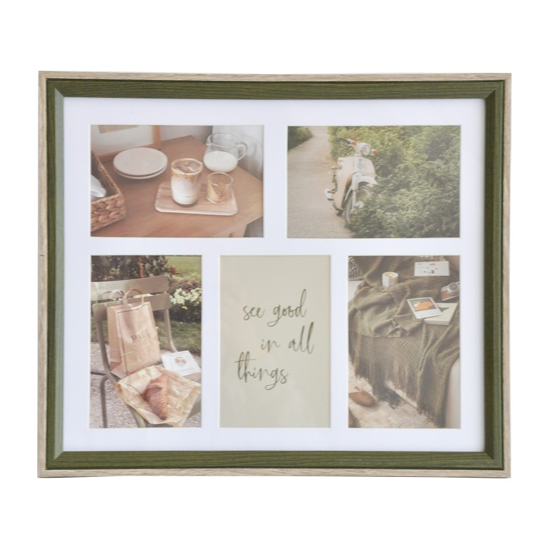 Kehys, jossa paikka viidelle 14x9 cm kuvalle.
