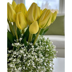 Aidon oloinen tulppaanikimppu. Viisi tulppaania.