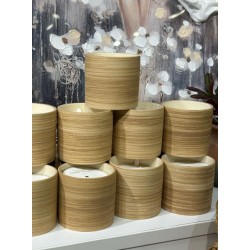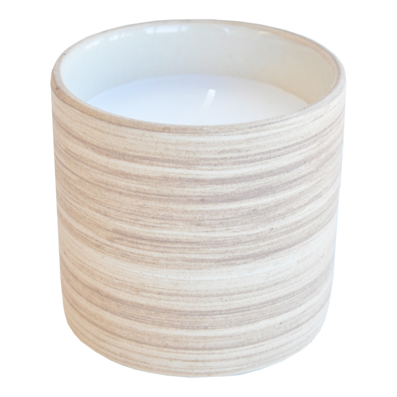Pyöreä keraaminen kynttilä, jossa kaunis "puukuvio".